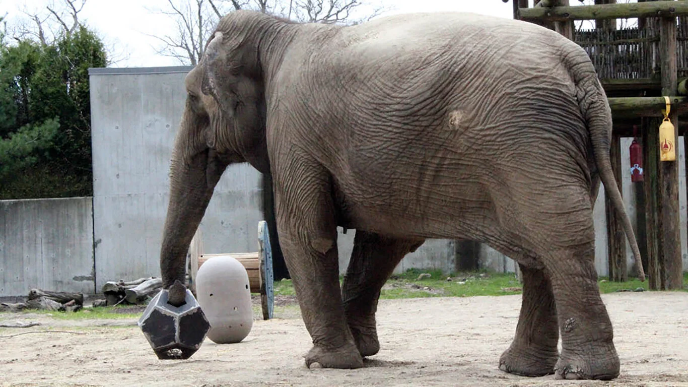 Mass Art partnered with the Buttonwood Park Zoo and Handshouse Studio to design and build toys for two elephants, Emily and Ruth. The elephants require enrichment activities to keep them mentally and physically active. My team’s goal was to design a hay feeder that an elephant could pick up with their trunk, which was also not too heavy for a zoo keeper to move.
